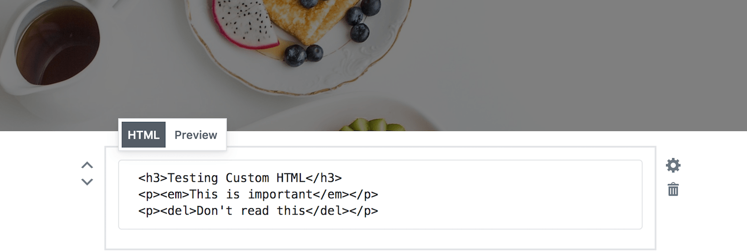 A new Custom HTML block allows users to add HTML and click to see a fast preview within the editor.